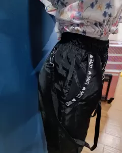 Jogger/Cargo nuevo color negro. Está completamente nuevo, tiene bolsas y la tela es tipo rompe vientos. Viene reducido a una CH cuenta con elastico en los tobillos y es de tiro alto