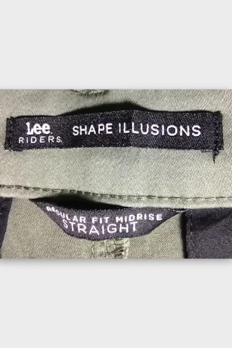 LEE Pantalón Straight Dama Algodón Verde XXL 14. LEE Pantalón Straight Dama Algodón Verde XXL 14Marca: LEEOrigen: BangladeshMaterial: 66% Algodón 31% Polyester 3% SpandexTalla: XXL - 14Estilo: PantalónPatrón: SthaightColor: Verde Oliva Cierre: Cremallera y BotónCintura: 43 cmCadera: 52 cmLargo: 87 cmTiro: 23 cmMuslo: 25 cmEntrepierna: 31 cmRopa de USO en muy buen estadoModelo único Lo que ves es lo que comprasAclara todas tus dudas antes de comprar