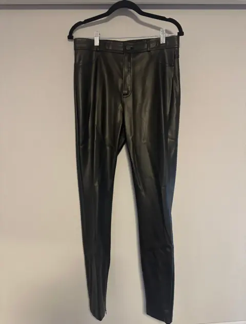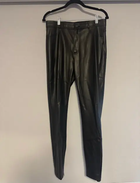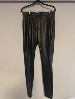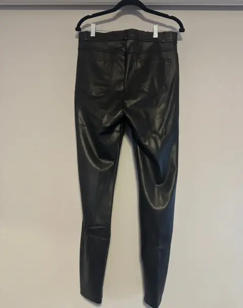 Legging efecto vini piel marca Zara, color negro, talla L (32)