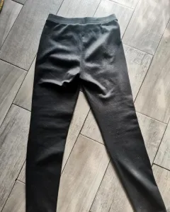 Bonito legging en tela de vinipiel solo por la parte de adelante, la parte de atrás es de tela de polyester, tiene un poco de bolitas pero ya puesto ni se nota, esta muy bonito.