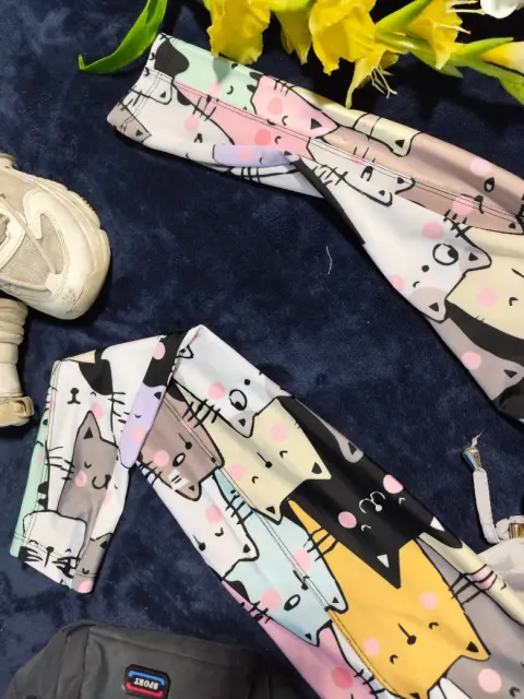 Coloridos Leggings con sublimado de Gatos. Ligero stretch, tela fresca, amolda al cuerpo. Pretina ancha y alta. Está precioso 😻 Unitalla.