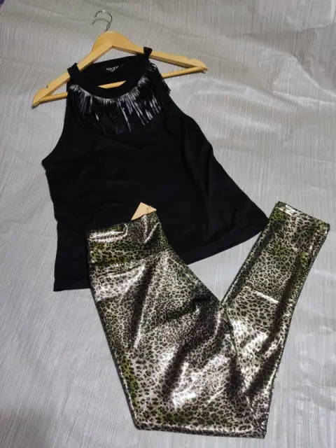 Leggins animal prin, en color rosa, y dorado, unitalla, nuevo con etiqueta.