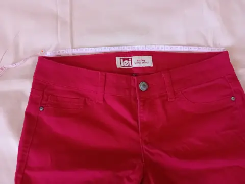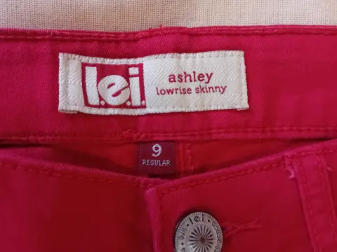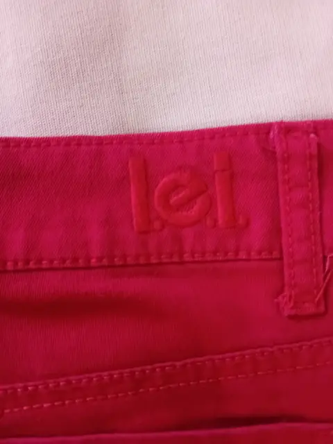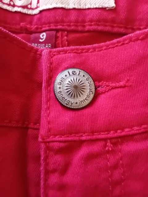 L.E.I.. Pantalón de mezclilla,Color rojoTalla 9Made in china61% algodón 36% poliester3% spandesElegante, corte parejo
