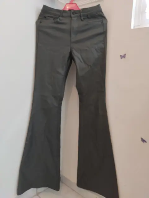 Lindo pantalón acampanado ❣️. Pantalón Shein de material PU color gris Oxford, acampanado. Talla S. Cuenta con bolsas delanteras y traseras. Se puede lavar en lavadora. Está nuevo, solo tiene una puesta.