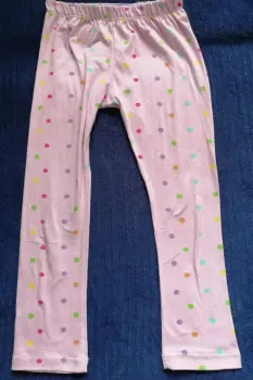 Mallón. Mallón legging para niña talla 10, rosa con bolitas de colores, 95% poliéster. Muy suave al tacto y en buenas condiciones.
