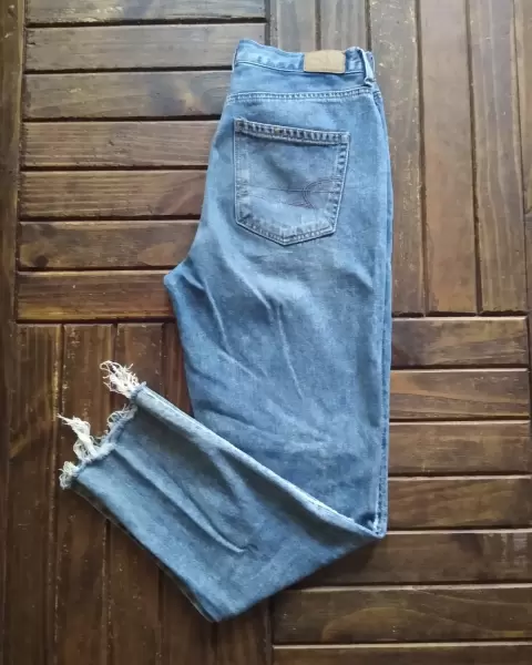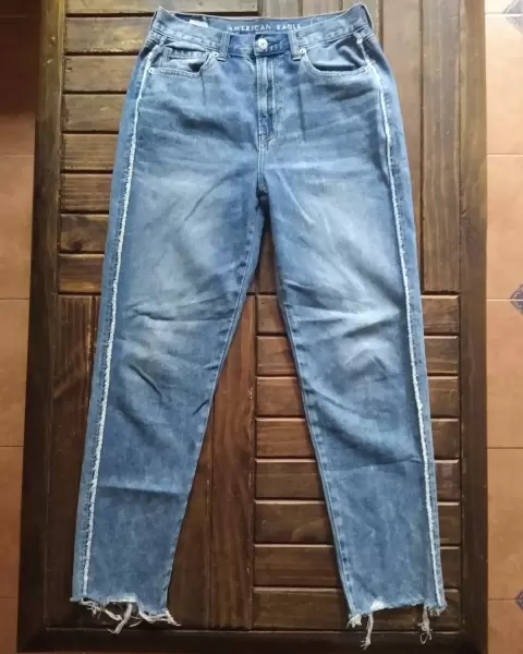 Mon jeans American Eagle. Bonito pantalón Mom Jean en tono azul clásico con bonito detalle de orilla y dobladillo destroyed, no tiene stretch*Talla 4*Medidas: Cintura 35cm. Cadera 46cm*Sin detalles, sólo se le puso nombre de mi sobrina a la etiqueta*Calificación:9*GRACIAS POR TU PREFERENCIA*