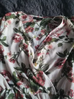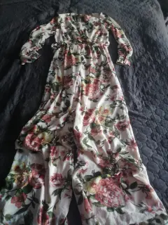 Mono estampado con flores de cuello V, manga larga con 4 botones, cinturón ajustable, elástico en la cintura pierna ancha forro por dentro. Talla L