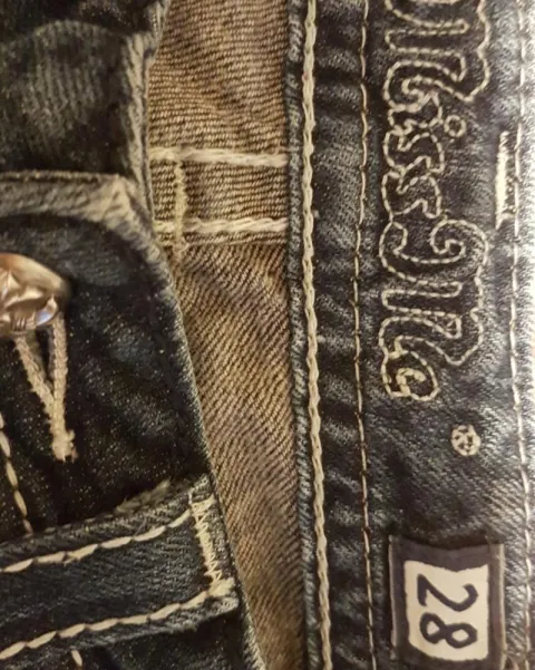 Pantalón Miss Me talla 28 mide 40 cm de pretina y 80 cm de circunferencia de cintura, 49 cm de cadera y 98 cm de largo