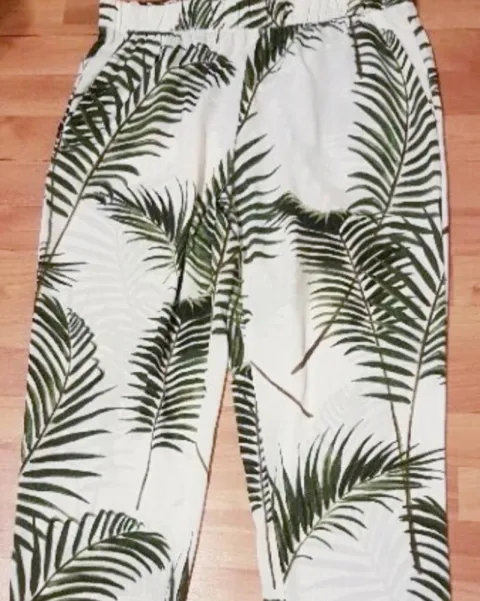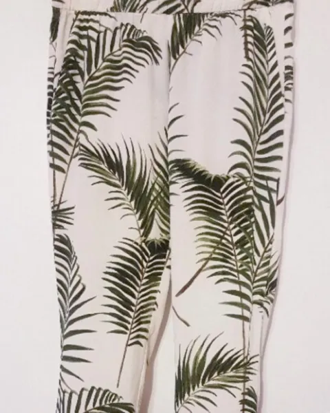 Padrisimo Pantalon de Palmeras. Pantalón de polyester mide 43 cm de cintura, 63 cm de cadera y 97 cm de largo tiene bolsas en la parte de la parte de enfrente tela delgada y fresca