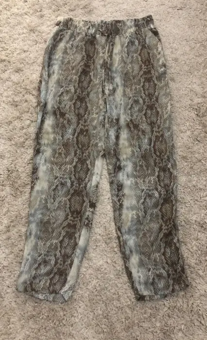 Padrisimo pantalón estilo palazzo en snake print. Lindo pantalón tipo palazzo, es súper cómodo , tiene jareta para ajustarse al frente , tela con bastante caída , moderno y fácil de llevar con sandalias o bien , zapato alto.