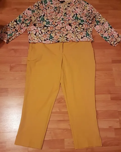 Padrisimo Pantalon Mostaza. Pantalon polyester talla 14 americano mide 48 cm de cintura, 61 cm de cadera y 94 cm de largo tiene bolsas al frente. Hace muy bonita figura.