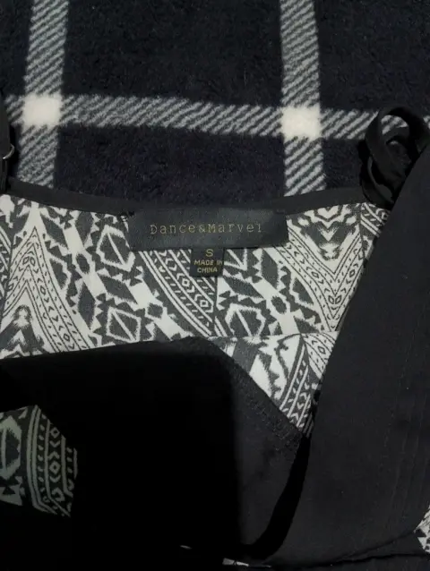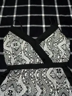 Blanco con negro floreado bonito escote en v y elegante banda al costado ideal para estas fiestas