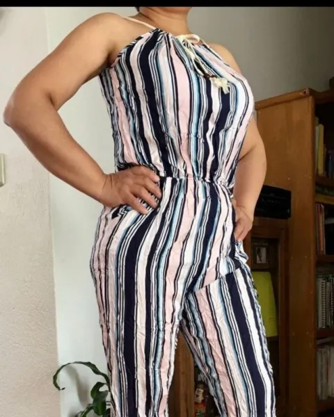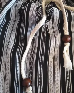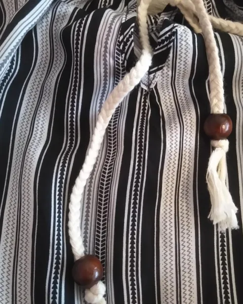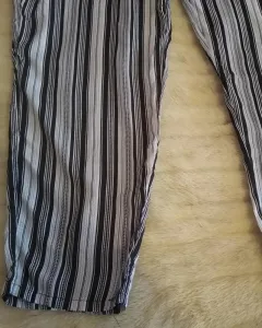 Palazzo blanco y negro unitalla, queda perfecto desde tallas extra chicas, hasta grande.Tela con diseño a rayas.Se anuda al cuello.Bolsas laterales.