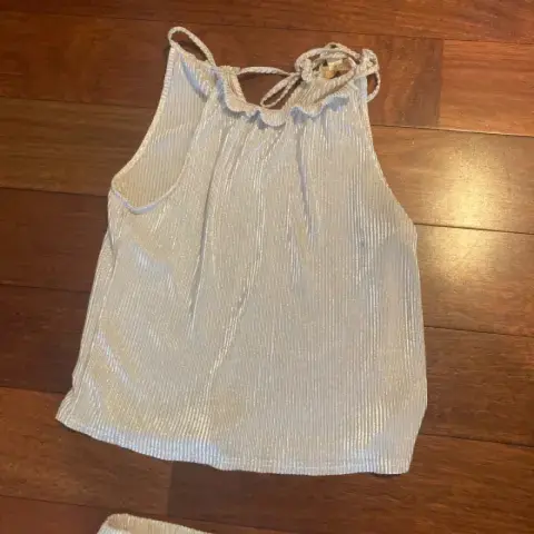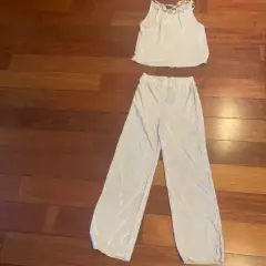 Palazzo en dos piezas. Hermoso Palazzo (conjunto) color beige, tela brillosa, pantalón de campana