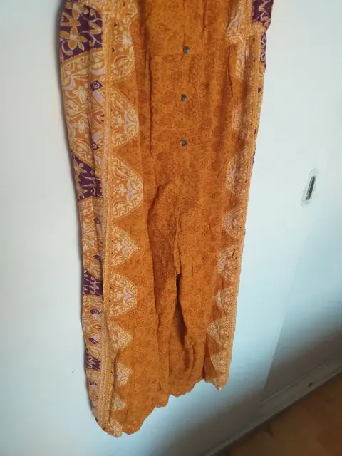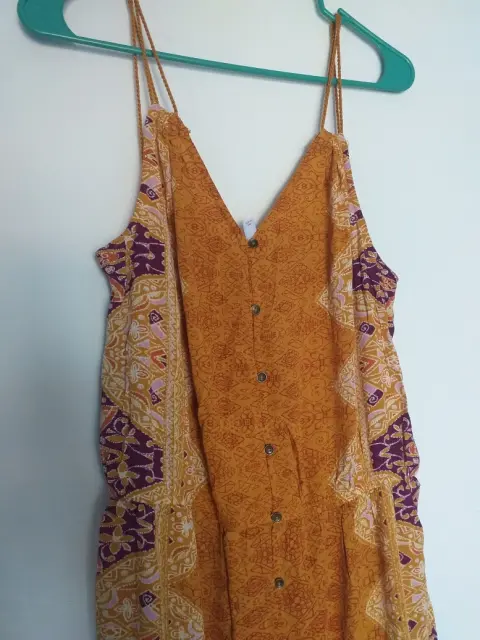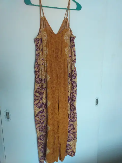 Palazzo estampado marca xhilaration. Palazo color mostaza,estampado,sin mangas con tirantes,a 3/4 de la pierna.,con botones al frente