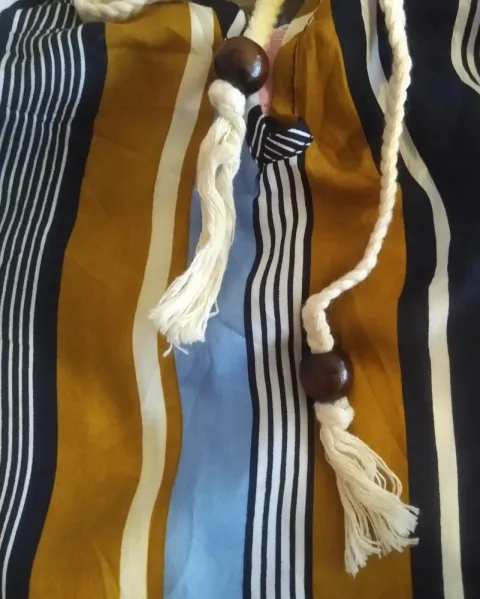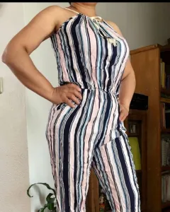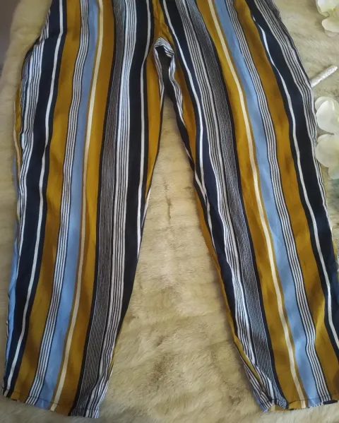 Palazzo UNITALLA multicolor queda perfecto desde tallas extra chicas, hasta grande.Tela con diseño a rayas.Se anuda al cuello.Bolsas laterales.