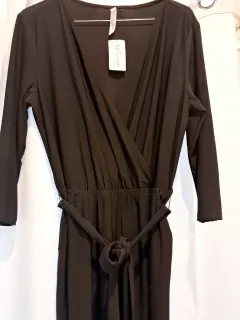 Nuevo! Talla L, pero queda desde una M. 50 cm de axila a axila y 1.45 m de largo. Cintura con resorte que estira, bolsillos y corte de pierna ancha.Modelo tal cual como se muestra en la foto.Sin detalles.