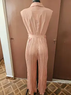 Palazzo new feeling. Prenda nuevaSpandex con poliesterPantalón tableada caída ampliaCon cierre al costadoViene con su lazo para ajustar másEscote en v con cuelloBlusaHombros 43Axila 43Cintura 34Cadera 45Largo 145