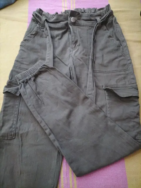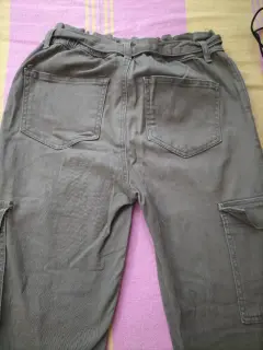 Pantalón. Pantalón verde militar con resorte, cinturón, bolsas a los lados, traseras y delanteras