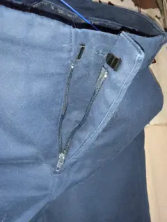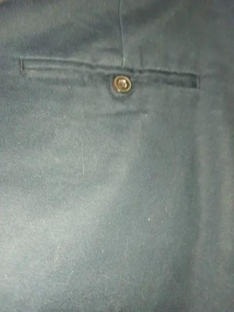 Pantalon. Corte recto muy formal, color azul marino, cierre y broche funcionan al 100. Bolsas frontales y detalle simulando bolsa parte trasera