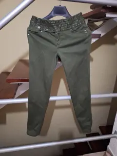 Pantalón. Pantalón verde militar con pinzas traseras para push up, composición 98% algodón 2%elastano. Talla 9