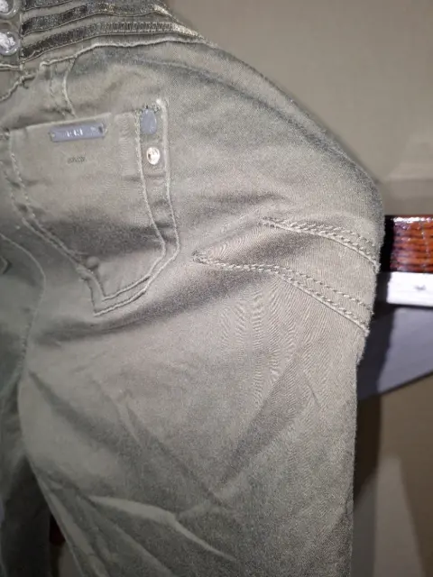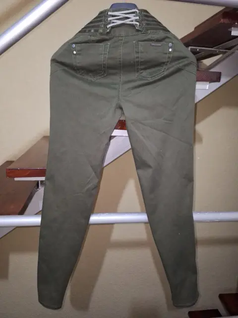 Pantalón verde militar con pinzas traseras para push up, composición 98% algodón 2%elastano. Talla 9
