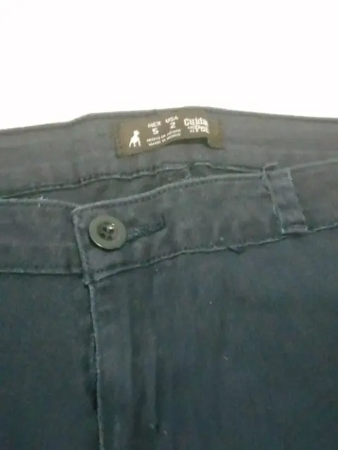 Pantalón de Gabardina azul marino, talle a la cintura, bolsas simuladas parte de atras, talla 5, largo 100cm