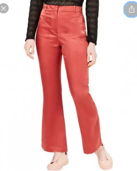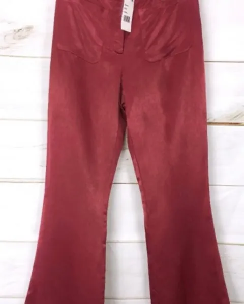 Pantalón acampanado rosa satinado. Pantalón acampanado, talla L, pero viene reducido a M. Suave al tacto, muy lindo.