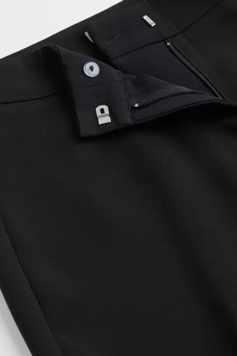 Pantalón en tela tejida de poliéster reciclado. Modelo de talle alto con cierre de zíper y gancho oculto, y piernas anchas con pliegues, esta super bonito.