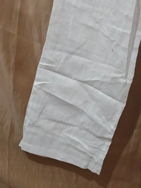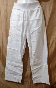 Pantalón ancho, blanco. Nuevo, talla 2XL (la talla viene reducida, por favor revisa la tabla de medidas).Con resorte ancho en la cintura, cintura alta, bolsas a los costados, corte recto.Tela lino, se transparenta un poco. Tabla de medidas en la tercer foto.