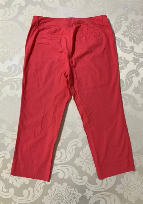 Pantalón de tela de vestir, tiro alto, no tiene strech. Corte capri con bolsillos enfrente y atrás. Queda a una talla S/M.Medidas/ cintura: 41 cm, cadera: 49 cm, tiro: 27 cm, largo: 80 cm.