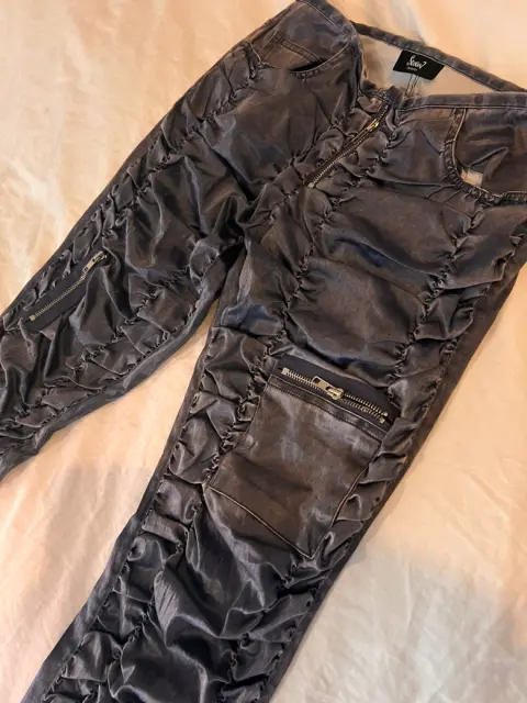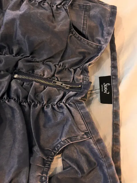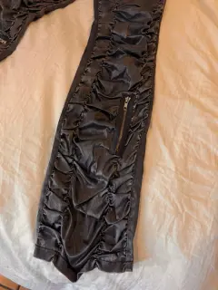 Pantalón azul coarrugado a la cadera Para un a talla S o M Cintura 37cm Cadera 49cm La tela estira un poco
