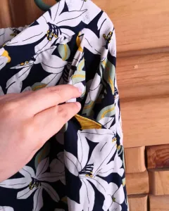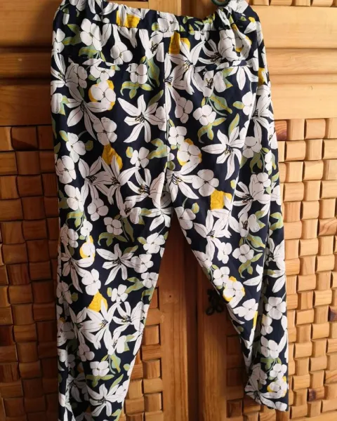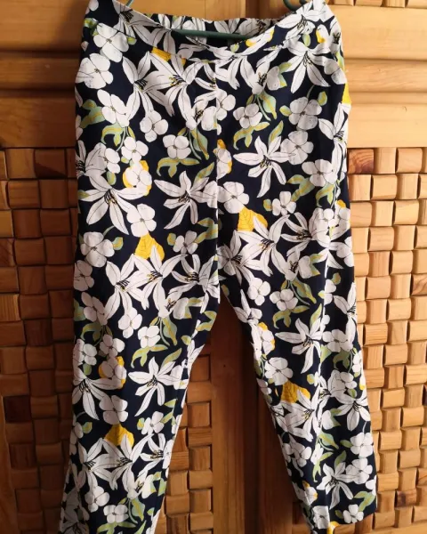 Pantalón tipo capri color azul marino con flores, tiene bolsas a los costados solo lo use 2 veces nadas mas por que subí de peso esta en perfecto estado estado no roto no manchas no desgastado
