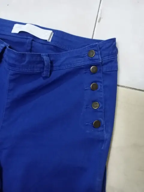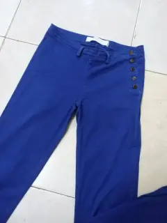 Pantalón ideal para vestir casual o semi formal, azul rey tiene los botones en el costado derecho, se puede usar con tenis o zapatillas. Marca Britos talla 9