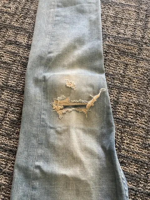 Pantalón nuevo para hombre, talla 30, con detalle de diseño de desgaste y roto, color azul
