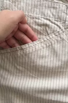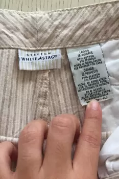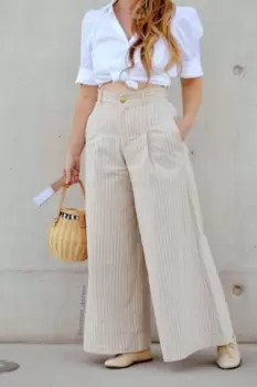Pantalon beige con rayas, la primera imagen es solo representativa no es el mismo modelo, el pantalon es tela de algodon con un poquito strech, viene con bolsillos enfrente y atras, boton y cierre, el corte es pierna amplia sin ser acampanado, mas bien es recto.Medidascintura: 93 cmcadera: 113 caderalargo: 105 cm