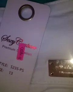 El pantalón esta en buen estado y sin usar con su respectiva etiqueta.Tiene costuras para efecto push up en la parte de atras.Medidas :Partiendo desde la cadera mide 86 cm de largo