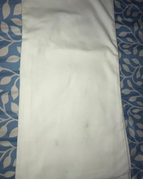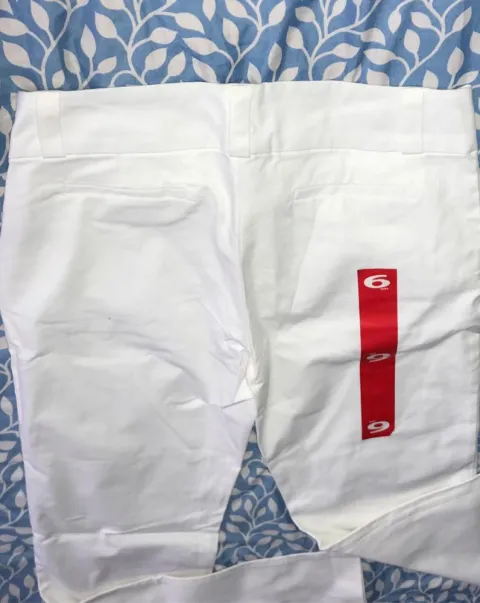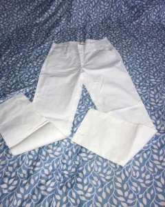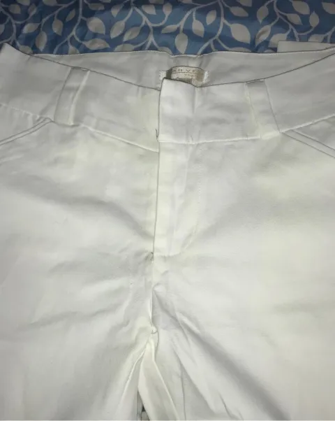 Pantalón blanco, tiene pequeños detalles que se muestran en la foto, nunca se usó, esta nuevo. Es talla 9 de algodón con Petrina broches y bolsas a los costados
