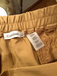 PANTALÓN CALVIN KLEIN COLOR CAQUI. PANTALÓN MARCA CALVIN KLEIN TALLA 16, COLOR CAQUI, CON RESORTE EN LA PARTE DE ATRAZ, BOLSAS A LOS COSTADOS, CIERRE DE LADO, STRECH, MUY CÓMODO, COMBINA PERFECTO CON CUALQUIER TONO (NOTA: TIENE PEQUEÑAS MANCHAS POR EL TRASLADO) REMOVIBLES, CON ETIQUETA TOTALMENTE NUEVO. CINTURA 50, CADERA 65 Y LARGO1.05