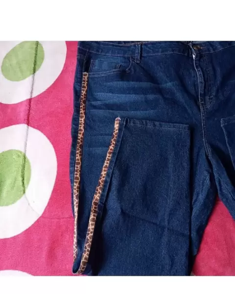 Pantalon de mezclilla, capri con bonito detalle al costado de animal print, excelente estado.