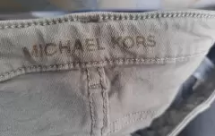 Pantalón capri de mezclilla MK. Color verde militar claro, talla 12, cintura 45 cm largo 79 cm, super cómodo