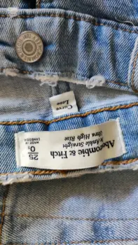 Pantalón Capri de mezclilla, talla 25/0. Pantalón tipo pescador de mezclilla azul claro, moderno, rasgado de ambas piernas, a la cintura.