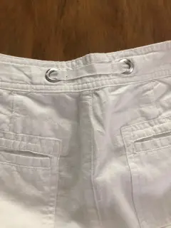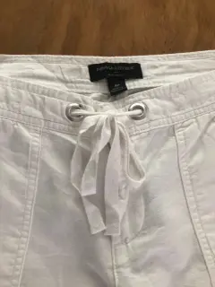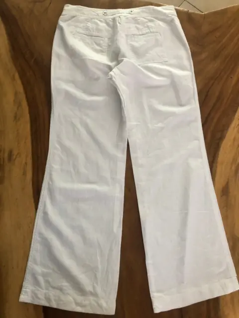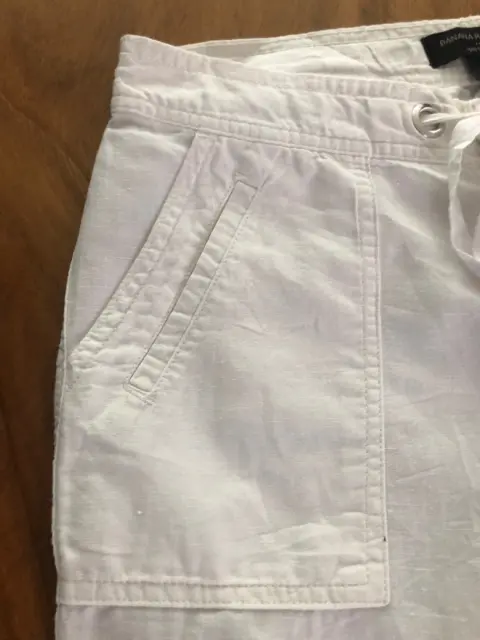 Pantalón casual lino blanco Talla 4 Banana Republic, en la parte delantera cuenta con 2 bolsas de cada lado como se observa en la foto, corte ancho