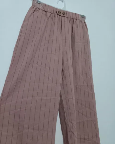 Pantalon casual ligero. Pantalon acampanado, tiro alto con botones al frenteElástico en cinturaLargo 93 cmCintura 31 cm*Color rosa claroAjusta talla S , 24-26 Mex
