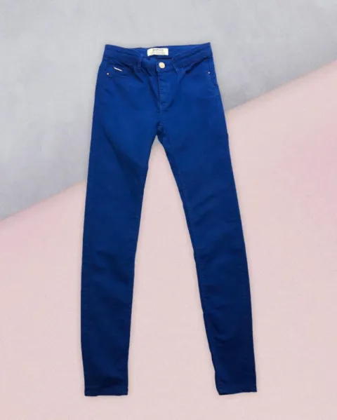 Pantalon casual Stradivarius Azul. Pantalones de vestir en color azul rey, con lindos detalles de dorado, de Stradivarius.