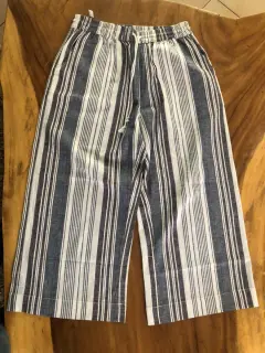 Pantalón Casual Talla S. Pantalón Holgado Talla S, la Tela súper fresca ( lino ) tiene bolsas en los costados, la pretina es de resorte llega por arriba del talón. medidas Cintura 36 cm cadera 56 cm