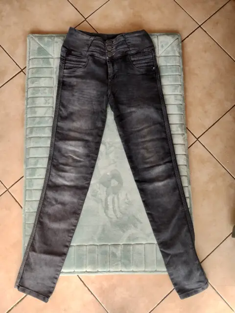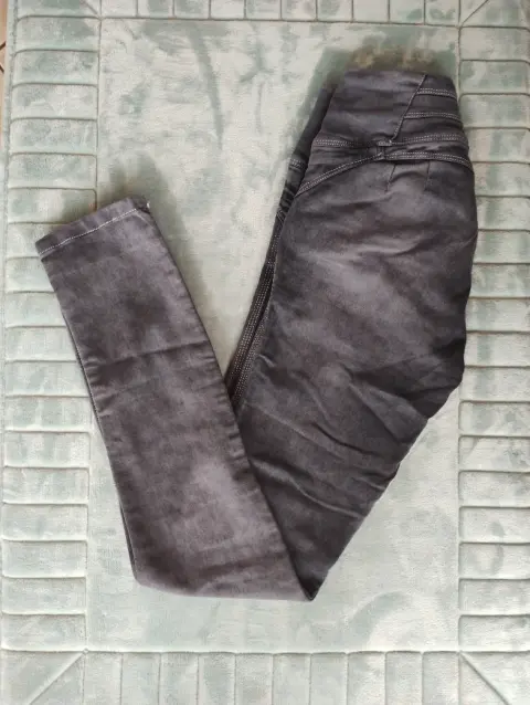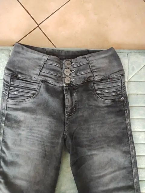 Lindo pantalón de mezclilla corte colombiano, color gris deslavado excelente calidad skinny, estrech, usado una vez talla S mide 35 CM cintura, 43 CM cadera, 25 CM de tiro, 96 CM de largo