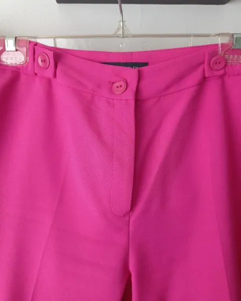 Fresco pantalón capri con un bonito diseño. Su tela permite la comodidad y movilidad sin problema. Ideal para usar en climas calurosos. Color rosa mexicano. Largo 80 cm, llega un poco abajo de la rodilla.