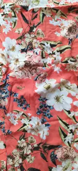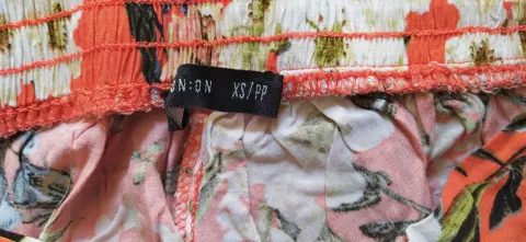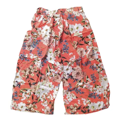 Pantalón culotte naranja con flores, marca Cotton on, talla XS/pp, resorte en cintura, muy ligero y fresco, con bolsas delanteras.Contorno cintura 64 cm estira hasta 76 cm.Contorno cadera 96 cm.Tiro 25 cm.Largo total 70 cm.