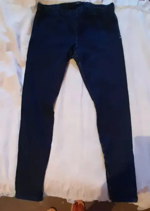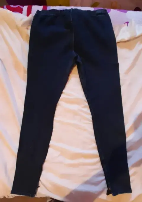 Lindo pantalón!!● Tela de Mezclilla.● Cómoda ya que tiene licra.● En la sintura tiene resorte.● En la parte de abajo de cada pierna tiene un diseño bonito de un zierre.Sus medidas Son:▪︎Ancho 52 cm ya estirando todo el resorte.▪︎ Largo 95 cm